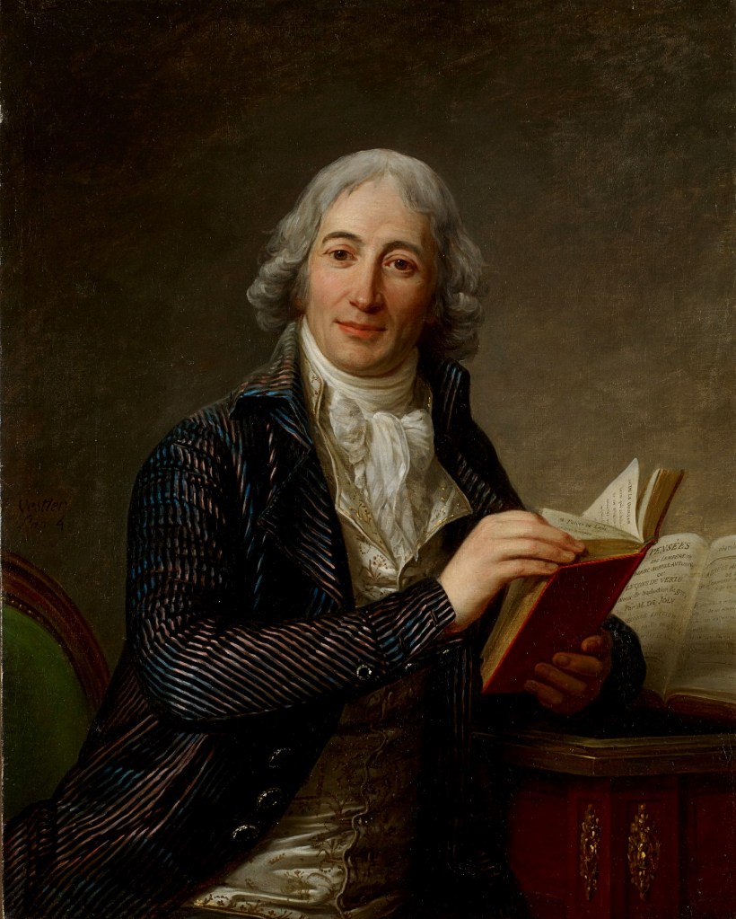 Antoine Vestier painted this portrait between 1795 and 1796, we know this because he signed it “Vestier-L’an 4”. According to the French Revolutionary calendar, the year 4 began in September 1795 and ended in September 1796. Although Etienne de Joly did not write anything of importance he must have been proud of his achievemnts as a Classic scholar and linguist since he chose to be portrayed with his translation of the Emperor Marcus Aurelius’ “Meditations”. On his desk there is an open book where we can read: “PENSÉES de l’Empereur Marc-Aurele-Antonin ou LECONS DE VERTU = Nouvelle traduction du grec par M. DE JOLY” (THOUGHTS of the Emperor Marcus Aurelius Antoninus or LESSONS OF VIRTUE = New translation from the Greek by M. DE JOLY)