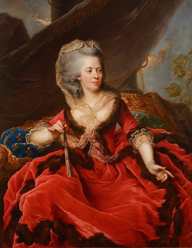 According to the records, Johann Julius Heintz portrayed two of King Louis XV´s eight daughters; Princesses Adélaide and Victoire, known as “Mesdames Adélaide et Victoire”, these portraits were painted over four years between 1784 and 1788. The beautiful portrait reproduced here was signed and dated “Heinsius pinxit/1784” (Heinsius painted it/1784) therefore Marie-Adélaide was 64 years old when Heintz portrayed her. If we compare his portrait with the one painted three years later by Adélaide Labille-Guiard (1749-1803) we can assume that the German painter did not idealize her. Unfortunately, I could not find any information regarding the Princess´opinion about the portrait; although, knowing her arrogant character that led her to reject two princely suitors (Louis François de Bourbon, Prince de Conti and Prince Franz Xavier of Saxony) because, in her eyes, they were not illustrious enough to marry the daughter of the King of France, we may believe she was satisfied with the commanding regal demeanour that Heintz gave her.